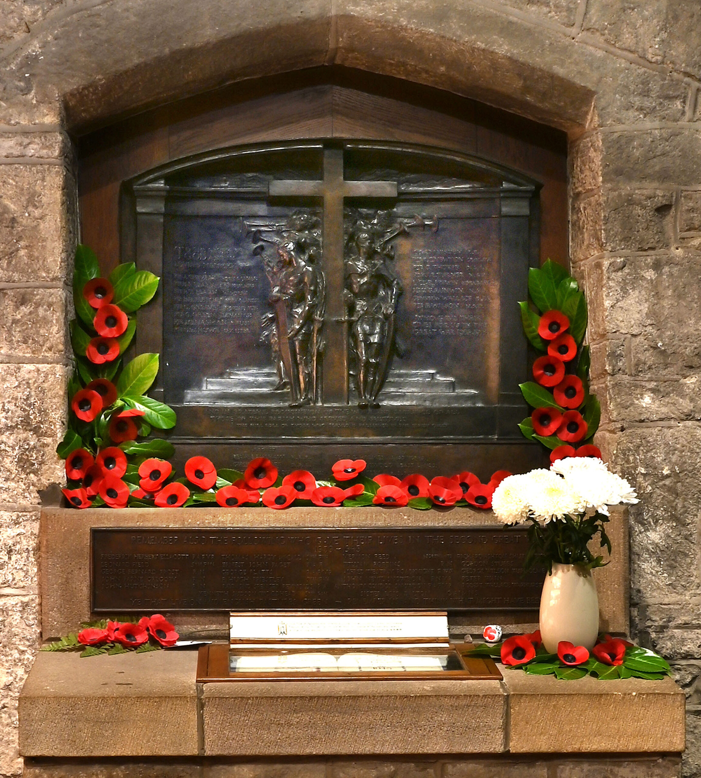 Many of the men remembered here came from families whose descendants still live in the area. Some worked in the mills and workshops of the village, while others came from farms, shops and local trades. Their stories are recorded in booklets published by the local branch of the Royal British Legion, which are available on the church bookstall.