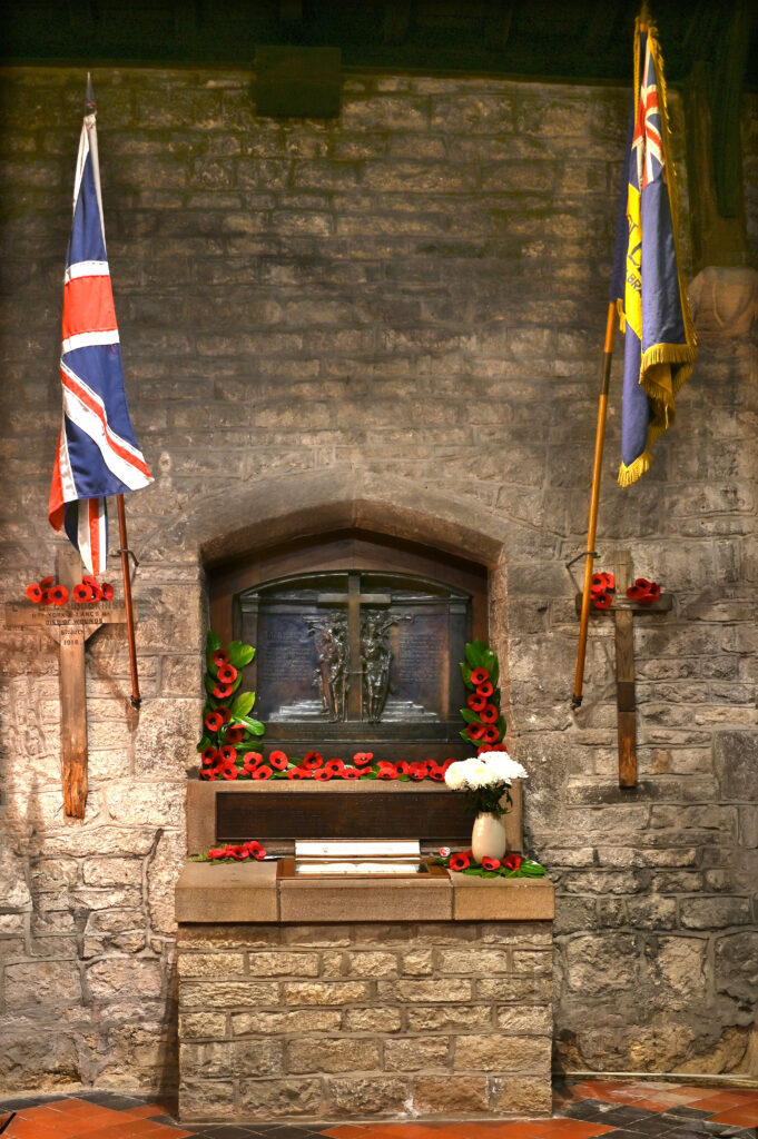 This part of the church has become a natural place for reflection. The soft light from the nearby aisle windows, the presence of the ancient stone and the simple dignity of the memorial create a gentle and peaceful setting.