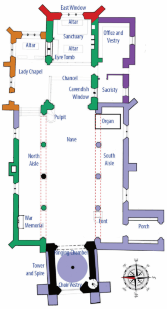 This self guided trail is designed to help you explore the history, stories and hidden details of St Michael and All Angels, a church that has stood at the heart of Hathersage for more than six hundred years. As you move from point to point, you will discover the people who shaped the building, the legends that grew around it and the craftsmanship that fills it with character. Each stop reveals a different part of the church’s past, from medieval stonework and stained glass to Victorian gifts, memorials and ancient family links.